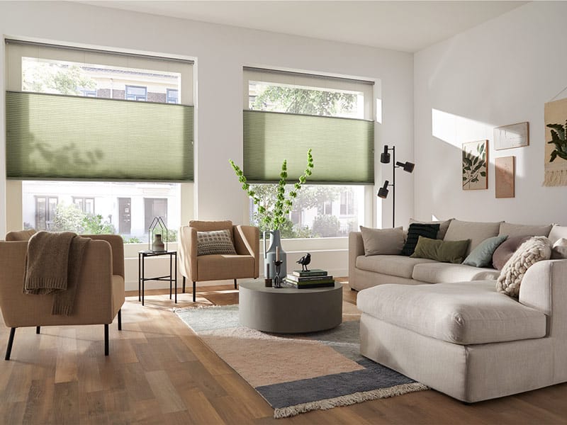 Et Duette® gardin er et dobbelt plisségardin i et stilrent design med skjult teknologi. De er designet med en unik bikubestruktur, hvor væv i to lag danner isolerende luftlommer.
