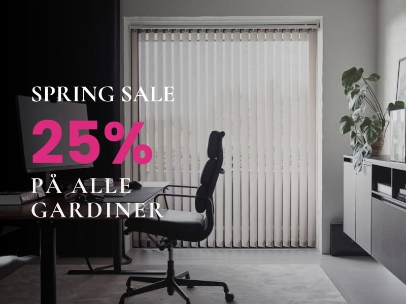 SPRING SALE er startet. Du sparer 25% på alle gardiner. Book dit besøg senest den 24. april 2026, og vælg en besøgstid, der passer dig. Du kan vælge en tid op til 3 måneder frem.
