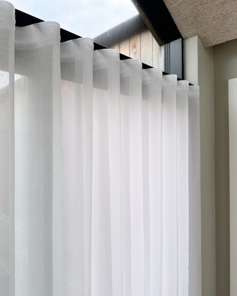 I første omgang valgte familien en hurtig løsning med færdigsyede gardiner. “Jeg har hadet de gardiner altid. Det lignede klude og så aldrig rigtig lækre ud, når vinden kyssede dem,” siger Sussie ærligt. Erfaringen fra hjemmet i Randers, hvor gardiner fra SEGA gjorde en markant forskel, blev afgørende for, at hun igen rakte ud.