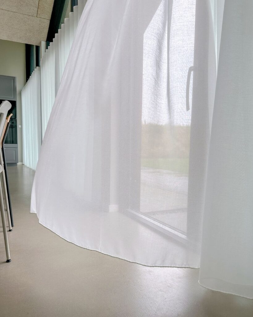 De nye gardiner er ikke kun smukke at se på – de gør også en praktisk forskel. “Før havde vi kun pyntegardiner. Nu kan vi lukke af for solens stråler ved skærmbrug, og vi har fået privatliv fra de åbne vidder omkring klitplantagen,” siger hun.